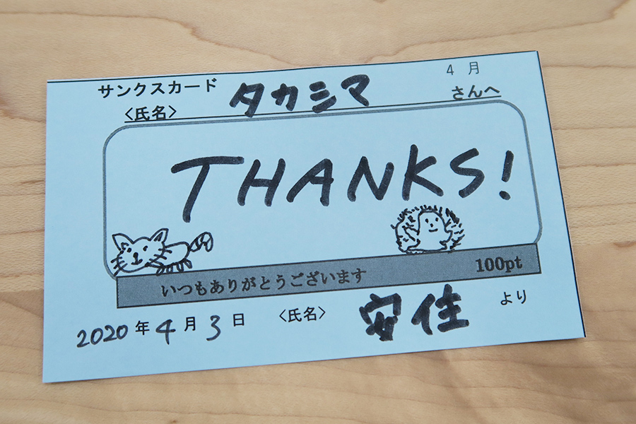 サンクスカードは弊社のユニークな社内制度のひとつです。